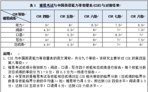對接結(jié)果呈現(xiàn)了雅思、普思考試各技能和總成績對應(yīng)中國英語能力等級量表相關(guān)等級的臨界分?jǐn)?shù)。如:雅思聽力得5分,即達(dá)到中國英語能力等級量表四級水平;閱讀得5.5分,達(dá)到五級水平;口語得6分,達(dá)到六級水平;總成績得8分,即達(dá)到八級水平等。
