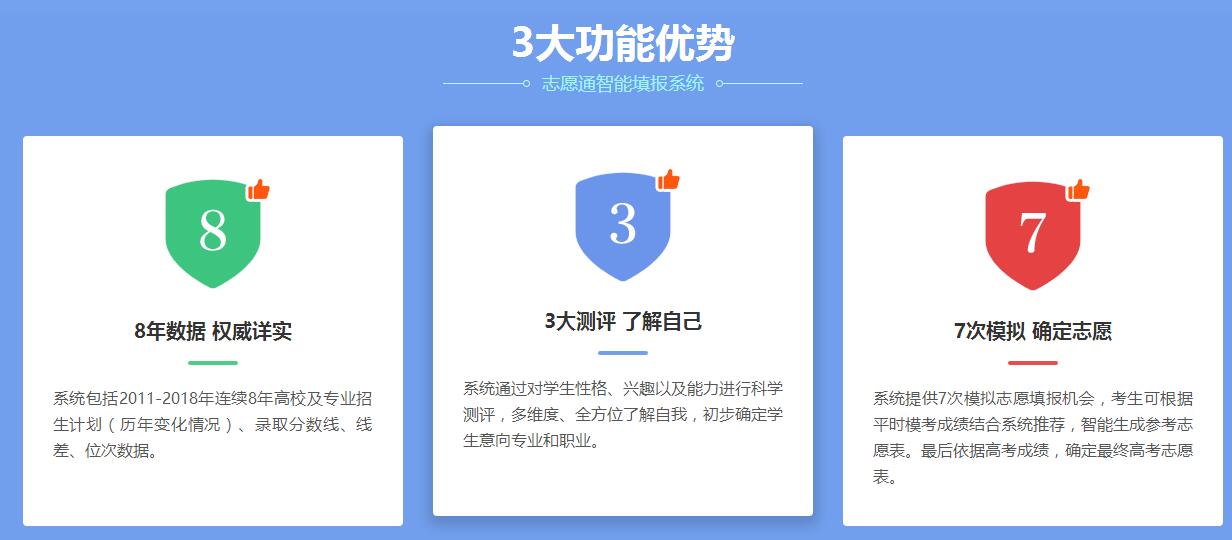 志愿通智能填報系統(tǒng)是專為江蘇考生設(shè)計的智能填報系統(tǒng),直接動手點一點就能全面了解:高校及專業(yè)7年招生計劃、錄取分數(shù)線、線差、位次等數(shù)據(jù);還有興趣性格測評、模擬填報志愿功能,幫你定專業(yè)、填志愿。