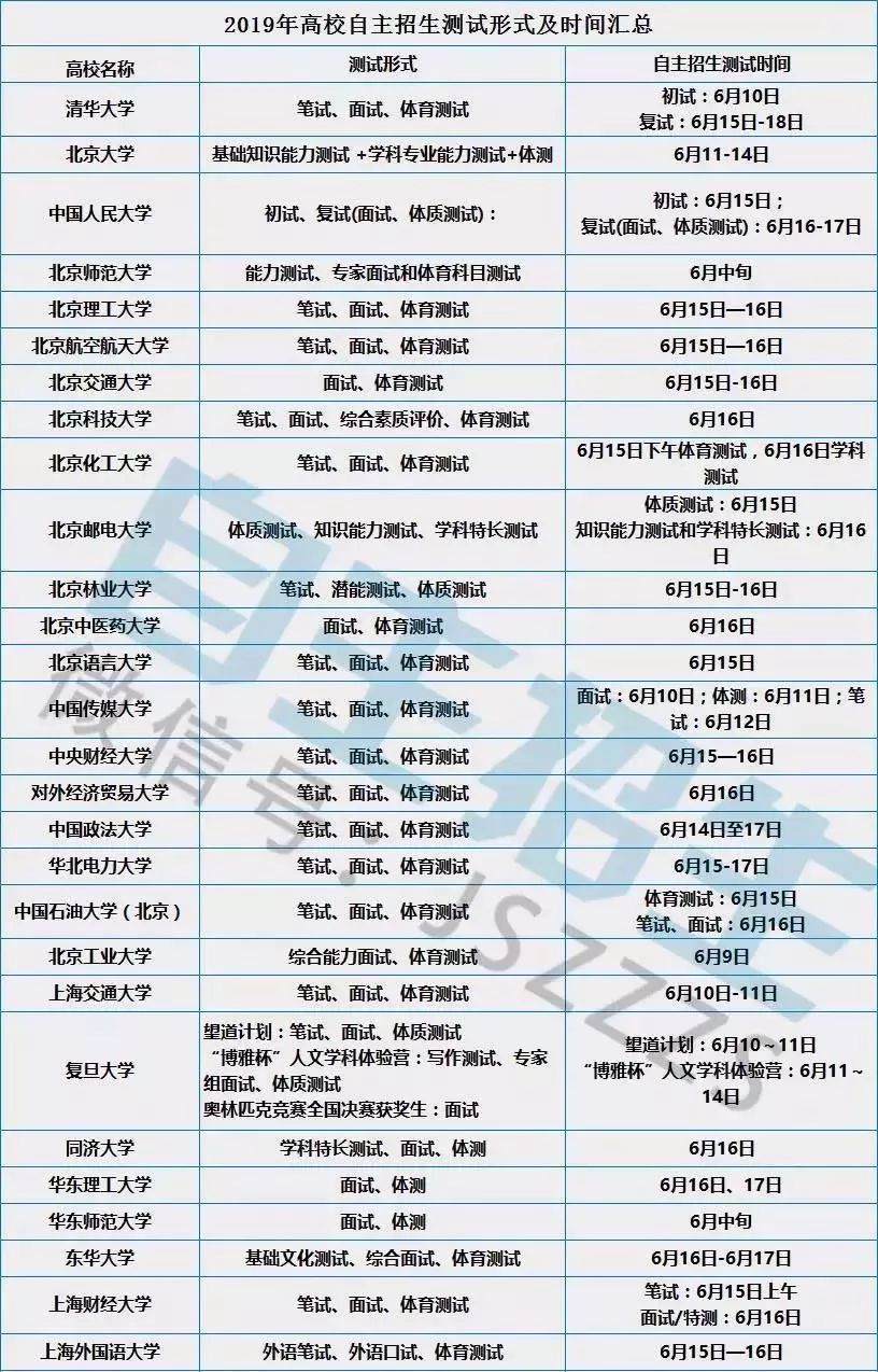 適用對象: 2019屆通過自主招生、綜合評價初審的考生。