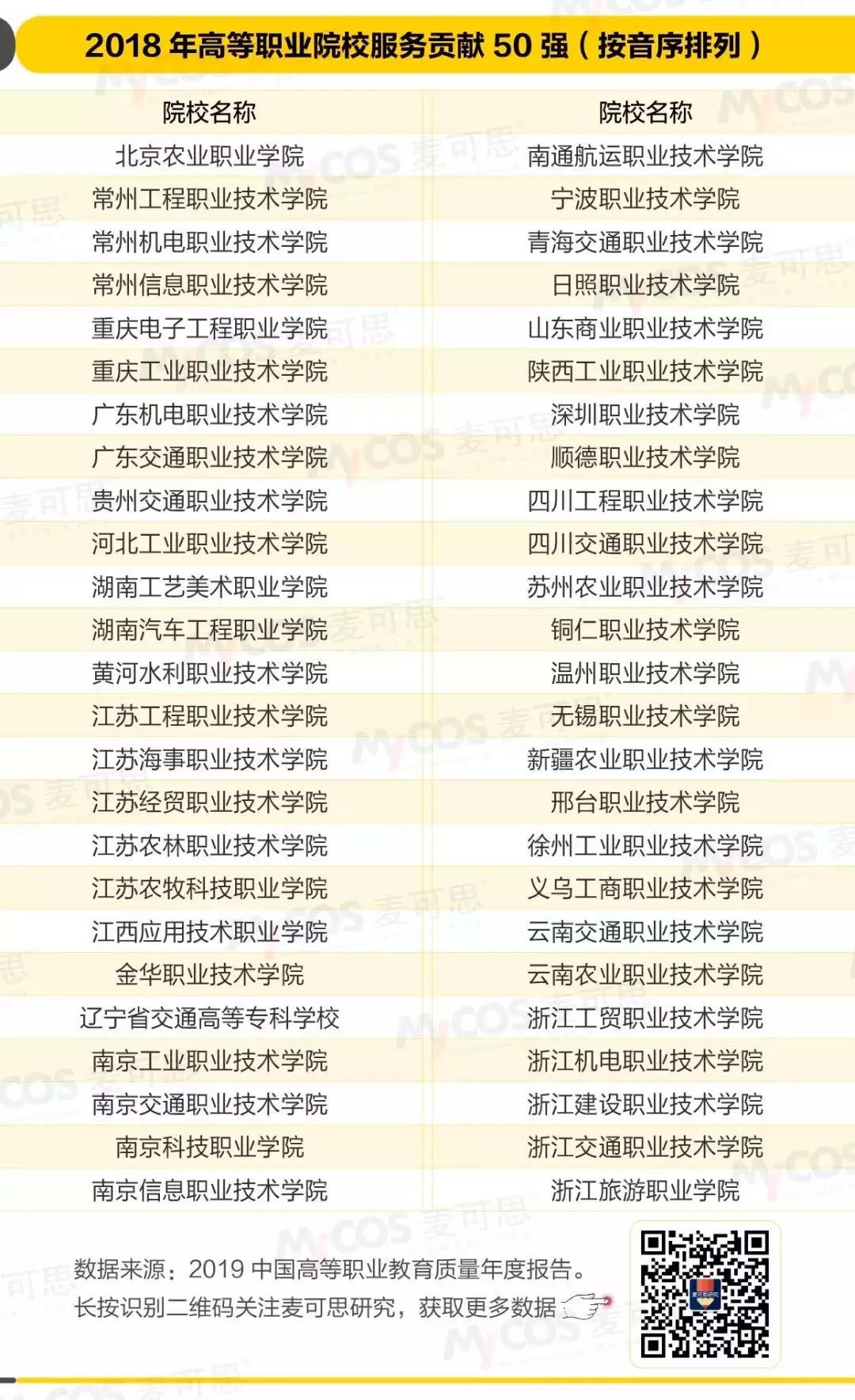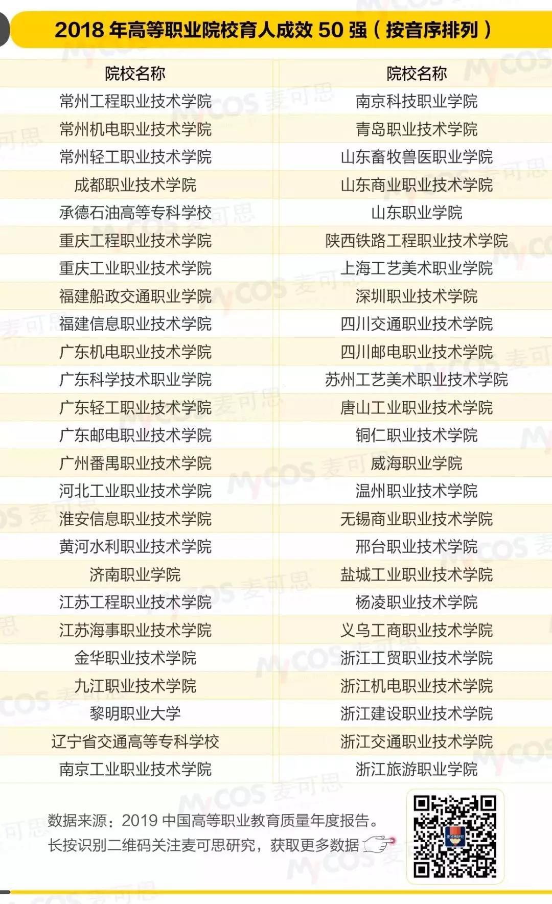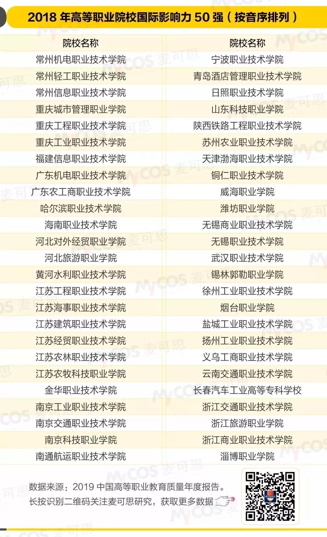 常州機(jī)電職業(yè)技術(shù)學(xué)院、廣東機(jī)電職業(yè)技術(shù)學(xué)院、黃河水利職業(yè)技術(shù)學(xué)院、江蘇工程職業(yè)技術(shù)學(xué)院、江蘇海事職業(yè)技術(shù)學(xué)院、南京科技職業(yè)學(xué)院、銅仁職業(yè)技術(shù)學(xué)院、義烏工商職業(yè)技術(shù)學(xué)院、浙江交通職業(yè)技術(shù)學(xué)院、浙江旅游職業(yè)學(xué)院10所高校上榜育人成效50強(qiáng)、國(guó)際影響力50強(qiáng)、服務(wù)貢獻(xiàn)50強(qiáng)3個(gè)榜單。