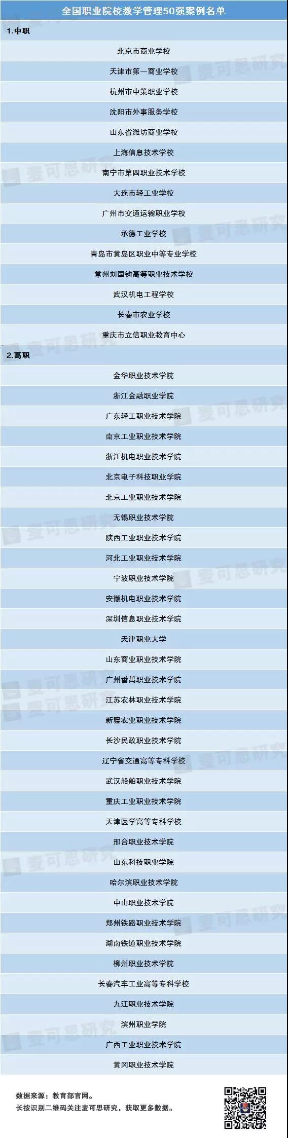 全國(guó)職業(yè)院校教學(xué)管理50強(qiáng)和學(xué)生管理50強(qiáng)案例名單公布