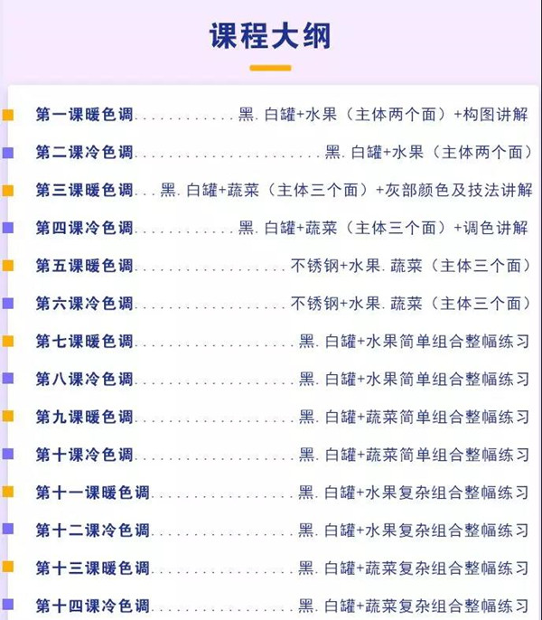 比如:多種蔬菜類組合表現(xiàn)時(shí)要注意歸納各個(gè)蔬菜間的前后主次關(guān)系,靠前的要作為重點(diǎn)刻畫,刻畫時(shí)要遵循單個(gè)蔬菜的表現(xiàn)要領(lǐng)進(jìn)行,但不可忽略其對(duì)周邊物體的聯(lián)系。