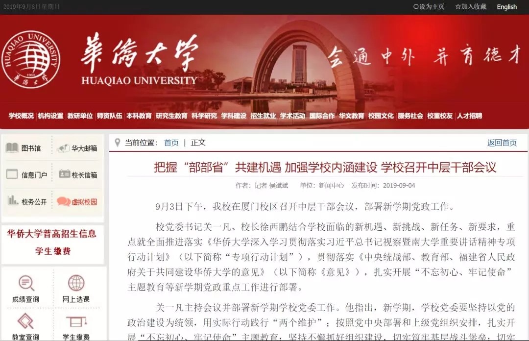 華僑大學(xué)也在近日發(fā)布消息稱,8 月19日,中央統(tǒng)戰(zhàn)部、教育部、福建省人民政府于印發(fā)了《關(guān)于共同建設(shè)華僑大學(xué)的意見》(統(tǒng)發(fā)〔2019〕71號),決定共同建設(shè)華僑大學(xué)。根據(jù)《意見》精神,今后中央統(tǒng)戰(zhàn)部將把學(xué)校發(fā)展納入中央統(tǒng)戰(zhàn)部整體規(guī)劃,與教育部、福建省人民政府在資金、政策、規(guī)劃等方面對學(xué)校予以支持,旨在助力學(xué)校發(fā)揮僑校特色與優(yōu)勢,擦亮僑校金字招牌,推動高水平大學(xué)的建設(shè)?!?/p>