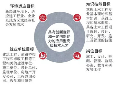 土木類專業(yè)特色:“大土木”教育理念下,強(qiáng)化行業(yè)屬性、區(qū)域?qū)傩?、發(fā)展屬性、實踐屬性,打造基于CDIO(Conceive-構(gòu)思、Design-設(shè)計、Implement-實現(xiàn)、Operate-運作)工程教育模式的應(yīng)用型人才培養(yǎng)專業(yè)特色: