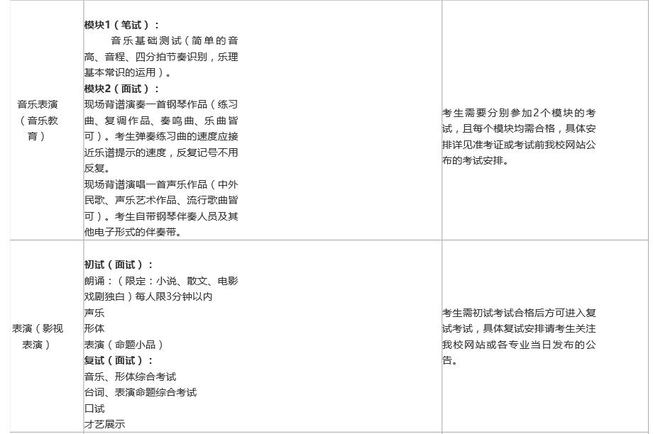 1.音樂表演(音樂教育)專業(yè)僅招收聲樂和鋼琴方向;
