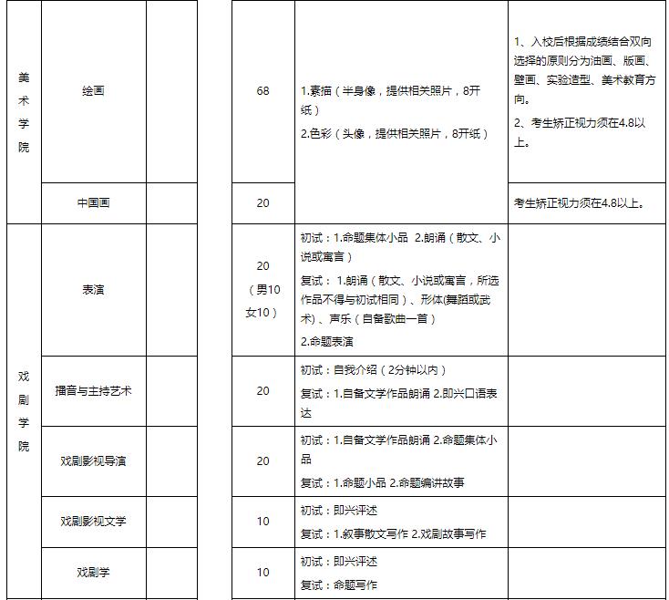 3.因各省對藝術(shù)類專業(yè)統(tǒng)考政策要求不盡相同,考生應(yīng)依據(jù)所在省份的報考要求慎重報考;如考生違反所在省份文件政策及我校報考要求,致使校考成績無效的,后果自負(fù);考生報考專業(yè)涉及到所屬省級統(tǒng)考有達(dá)標(biāo)要求的,考生必須參加省級統(tǒng)考,且成績合格,省級統(tǒng)考不合格的考生,參加我校專業(yè)考試成績無效。