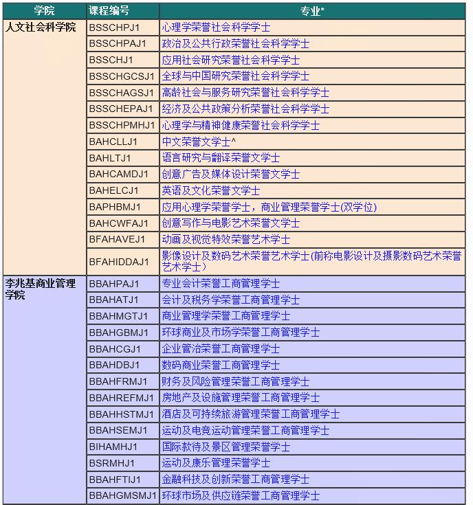 ^此等課程的學生或需要在第一年修讀多于40學分的科目。