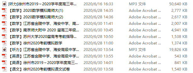 2020年作文總復習、2020年英語所有題型解題技巧匯總(來源于龔露、孫三五老師);南通4模、鎮(zhèn)江3模、揚州4模;金中、海安中學、南外、南師附校數學卷;徐州考前模擬卷等等。