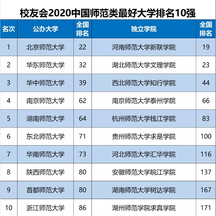 報告顯示,在艾瑞深中國校友會網(wǎng)2020中國大學(xué)排名1200強中,北京大學(xué)、清華大學(xué)、中南財經(jīng)政法大學(xué)、北京師范大學(xué)、北京協(xié)和醫(yī)學(xué)院、中國政法大學(xué)、中國農(nóng)業(yè)大學(xué)、中央民族大學(xué)、中國傳媒大學(xué)、中央美術(shù)學(xué)院、北京體育大學(xué)等分列校友會2020中國綜合類、理工類、財經(jīng)類、師范類、醫(yī)藥類、政法類、農(nóng)林類、民族類、語言類、藝術(shù)類和體育類最好大學(xué)排名榜第一。