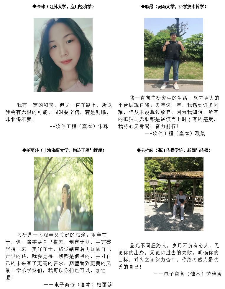“星光不負(fù)趕路人,天道酬勤佳音來”。2021年南理工繼教院考研錄取喜報(bào)頻傳。截止目前共10人被河海大學(xué)、南京工業(yè)大學(xué)、南京藝術(shù)學(xué)院等高校錄?。?/p>