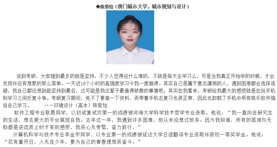 “星光不負(fù)趕路人,天道酬勤佳音來(lái)”。2021年南理工繼教院考研錄取喜報(bào)頻傳。截止目前共10人被河海大學(xué)、南京工業(yè)大學(xué)、南京藝術(shù)學(xué)院等高校錄??!