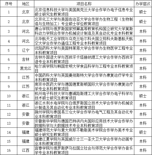 2020年上半年中外合作辦學(xué)項(xiàng)目獲批名單如下: