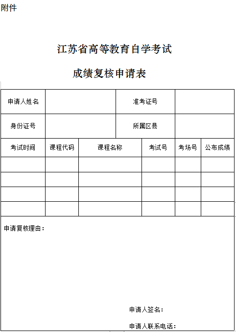 附件:江蘇省高等教育自學(xué)考試成績(jī)復(fù)核申請(qǐng)表