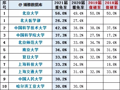 北大(醫(yī)學(xué)部)、復(fù)旦、交大、蘭大等擁有醫(yī)學(xué)院的高校,本科生總數(shù)未去除長學(xué)制,實際推免比例可能更高。