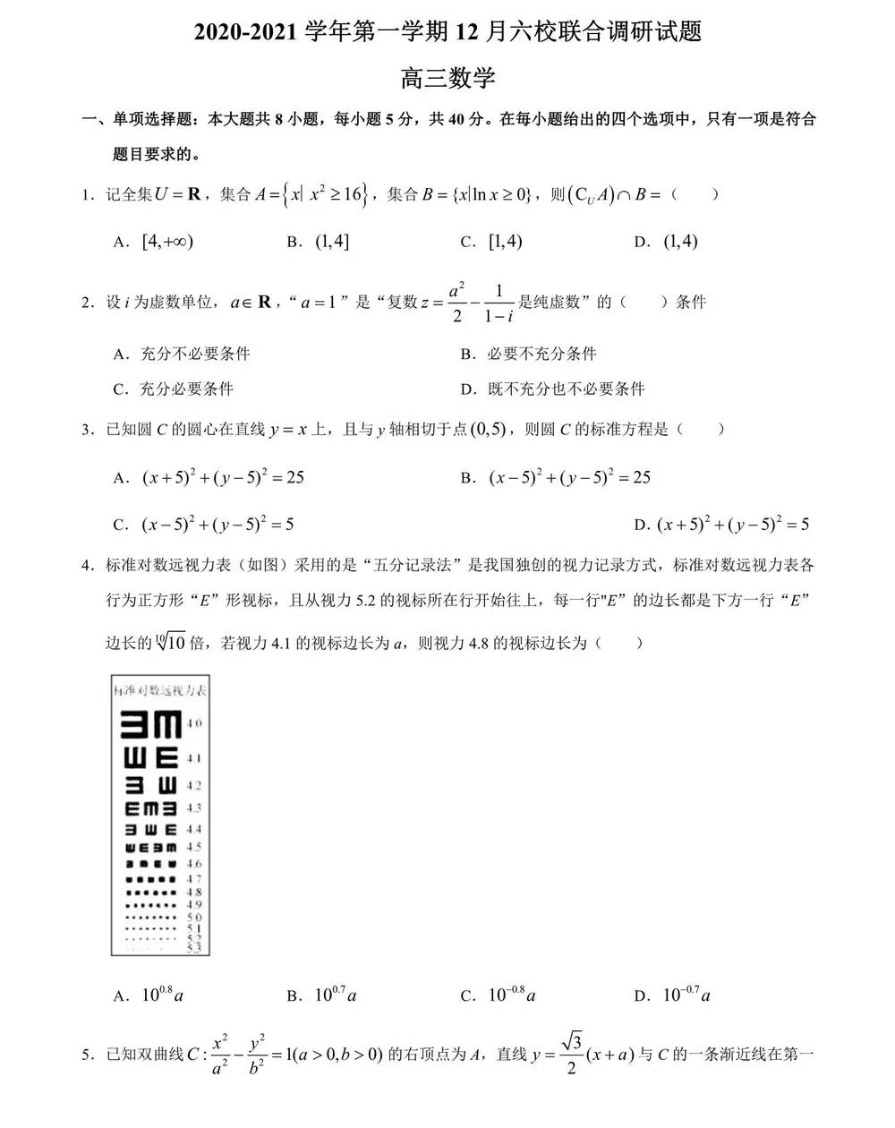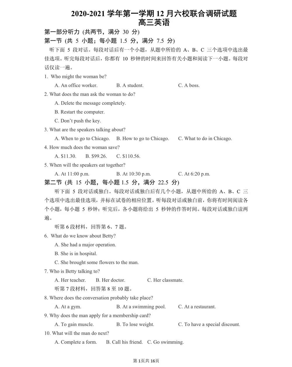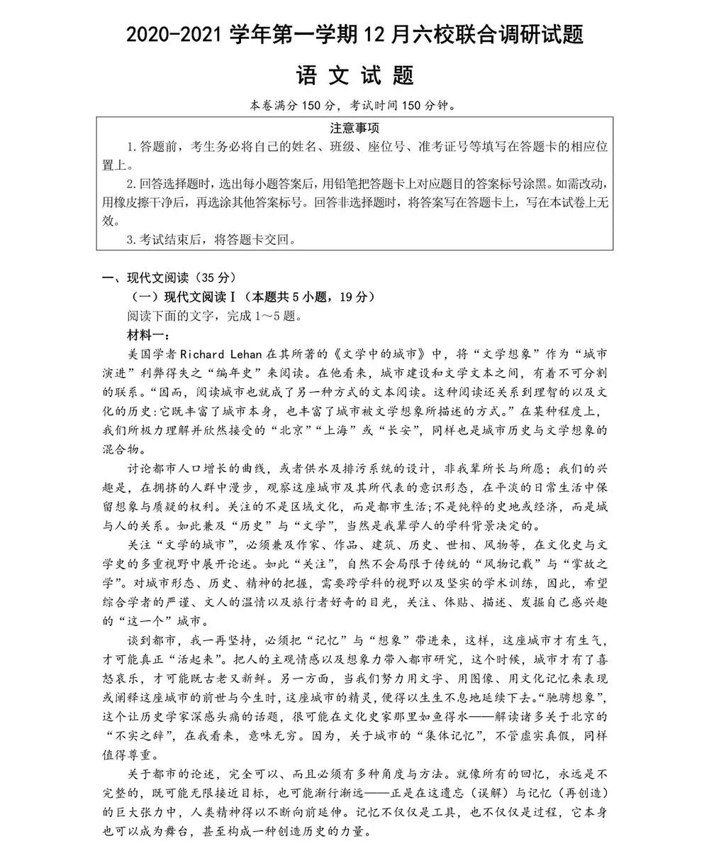 又有試卷和大家分享啦~今天,小招分享的是南京六校2021屆高三12月聯(lián)考試卷和答案快來領(lǐng)取吧!