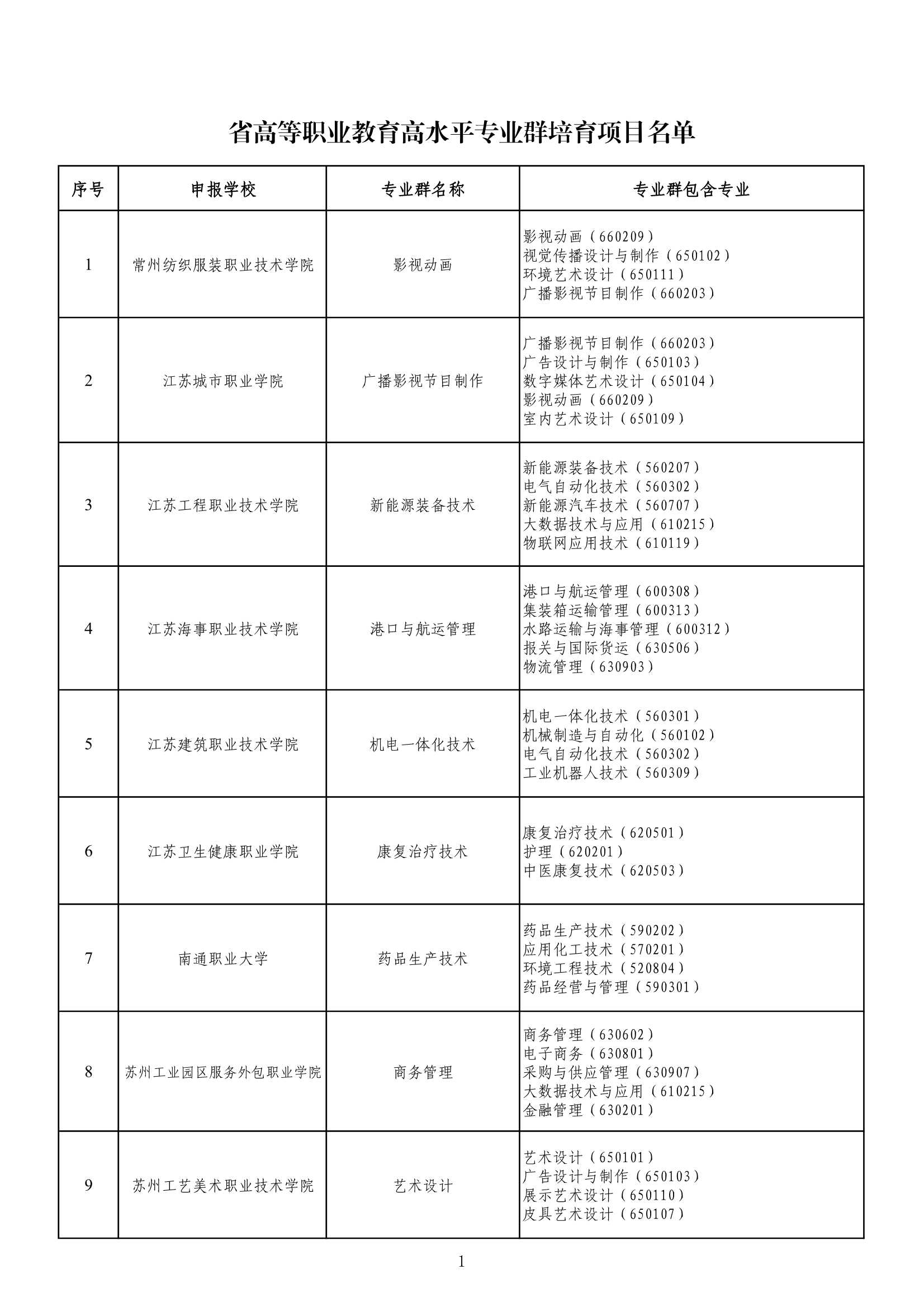 根據(jù)《省教育廳關于組織全省高等職業(yè)教育高水平專業(yè)群建設申報工作的通知》(蘇教職函〔2020〕31號)精神,經(jīng)學校申報、專家評審,共確定省高等職業(yè)教育高水平專業(yè)群立項項目100個,培育項目11個。