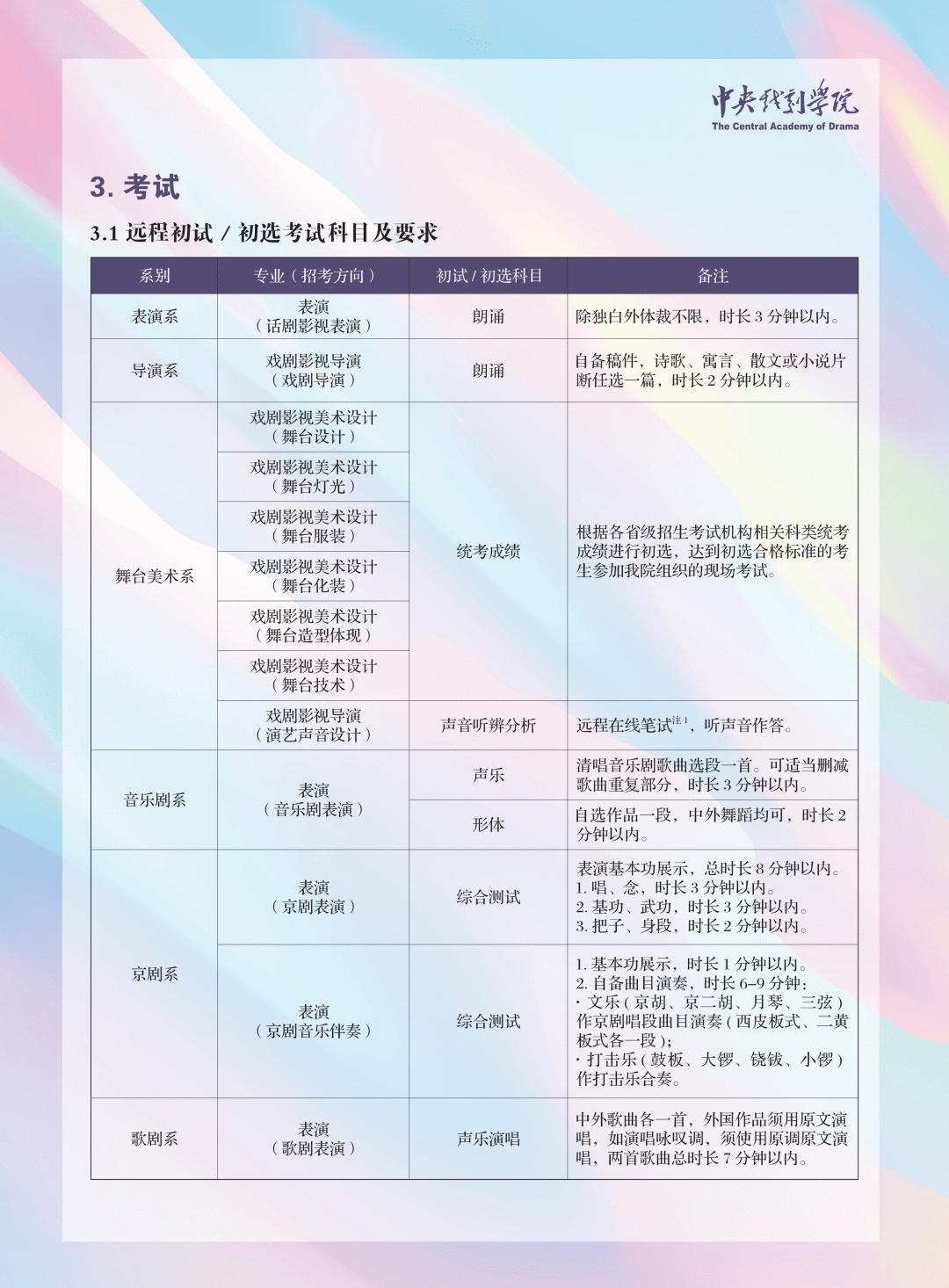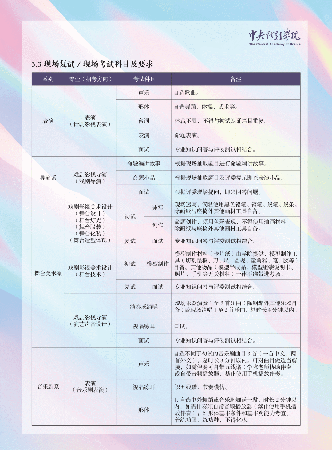 注:本文內(nèi)容來(lái)源中央戲劇學(xué)院,由江蘇招生考試網(wǎng)團(tuán)隊(duì)(微信公眾號(hào):jszkwx)綜合整理,如有侵權(quán),請(qǐng)及時(shí)聯(lián)系管理員刪除。