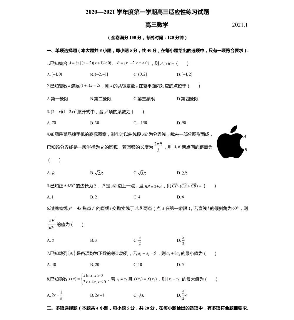 又有試卷可以領(lǐng)啦!今天,江蘇招生考試網(wǎng)小編給大家分享的是1月份揚州市2021屆高三適應性考試練習試卷和答案,快來領(lǐng)取吧!