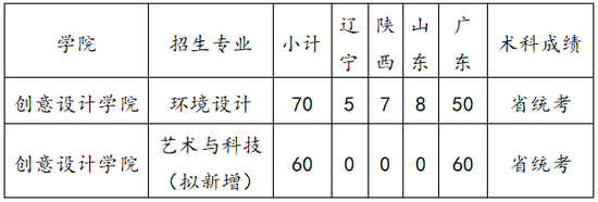 其中,藝術(shù)與科技為2021年擬新增設(shè)專業(yè)。根據(jù)招生簡章,如生源省份藝術(shù)類計劃不分文理,則藝術(shù)文理兼招,否則僅招藝術(shù)文。術(shù)科成績采用各生源省份省統(tǒng)考成績。在體檢要求方面,不招色盲色弱考生。
