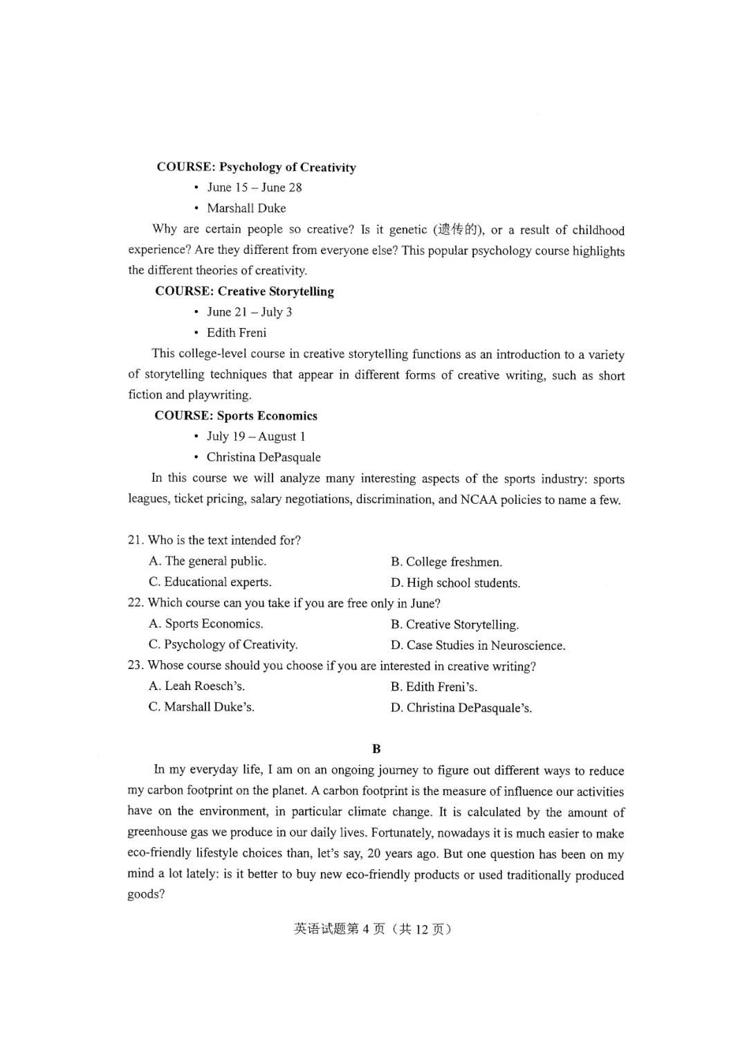 此次語文試卷有兩套,試卷中的現(xiàn)代文閱讀(Il)有所不同: