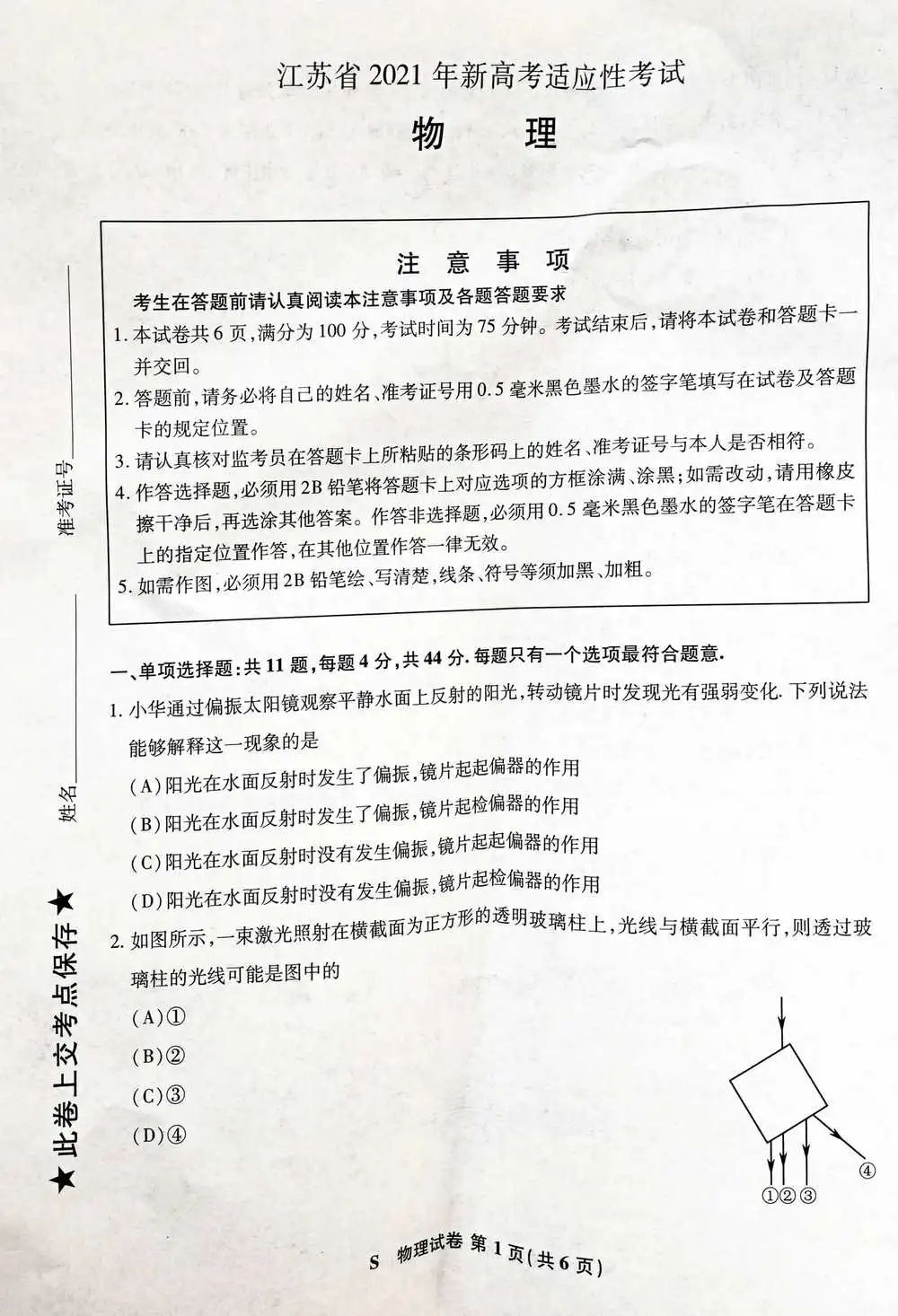 由于篇幅限制,完整版試卷可關(guān)注江蘇招生考試網(wǎng)旗下的【江蘇升學(xué)直通車】微信公眾號查看。
