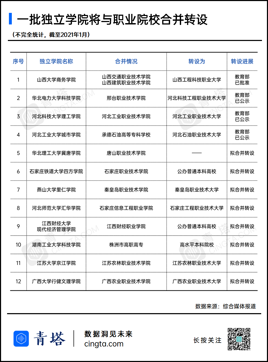 當(dāng)前高校合并浪潮的另一面,則是2020年消息頻傳的獨(dú)立學(xué)院合并轉(zhuǎn)設(shè)。