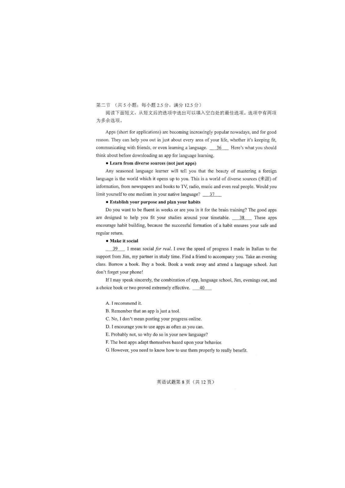 【英語】江蘇省2021年普通高等學(xué)校招生全國統(tǒng)一考試模擬演練英語試題