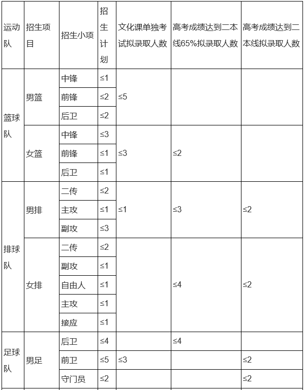 注:未公布的項(xiàng)目不招生。對(duì)于實(shí)行高考改革和合并本科錄取批次的省份,以省級(jí)招生考試機(jī)構(gòu)劃定的高水平運(yùn)動(dòng)隊(duì)參考錄取控制分?jǐn)?shù)線為準(zhǔn)。