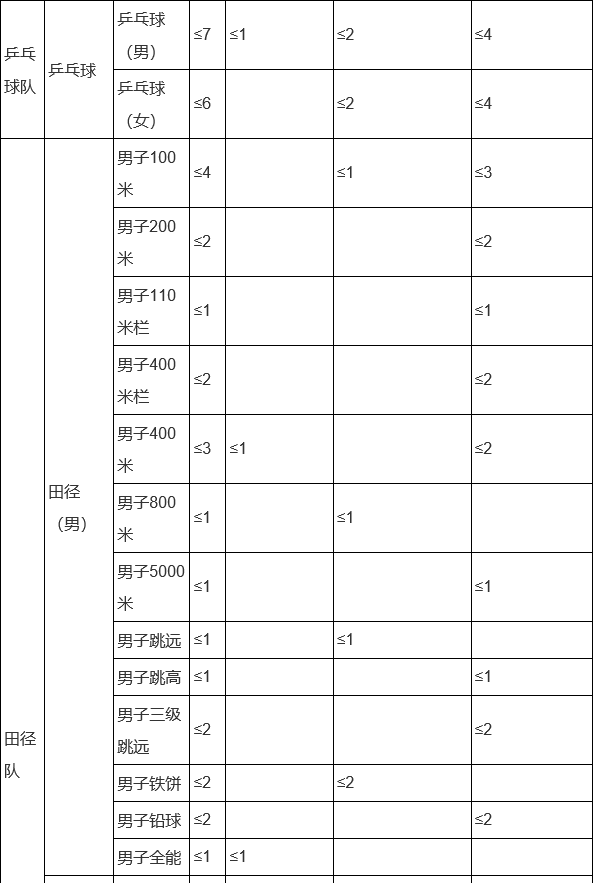3.考生所持有的運(yùn)動(dòng)員等級(jí)證書(shū)項(xiàng)目應(yīng)與報(bào)考的項(xiàng)目一致(運(yùn)動(dòng)小項(xiàng)也必須對(duì)應(yīng)一致,否則報(bào)名無(wú)效),男子全能項(xiàng)目考生所持有的運(yùn)動(dòng)員等級(jí)證書(shū)項(xiàng)目需為110米欄、跳高、鐵餅、標(biāo)槍和1500米五項(xiàng)其中之一。運(yùn)動(dòng)員技術(shù)等級(jí)以國(guó)家體育總局官方網(wǎng)站“運(yùn)動(dòng)員技術(shù)等級(jí)綜合查詢系統(tǒng)”公示的數(shù)據(jù)信息為準(zhǔn)。