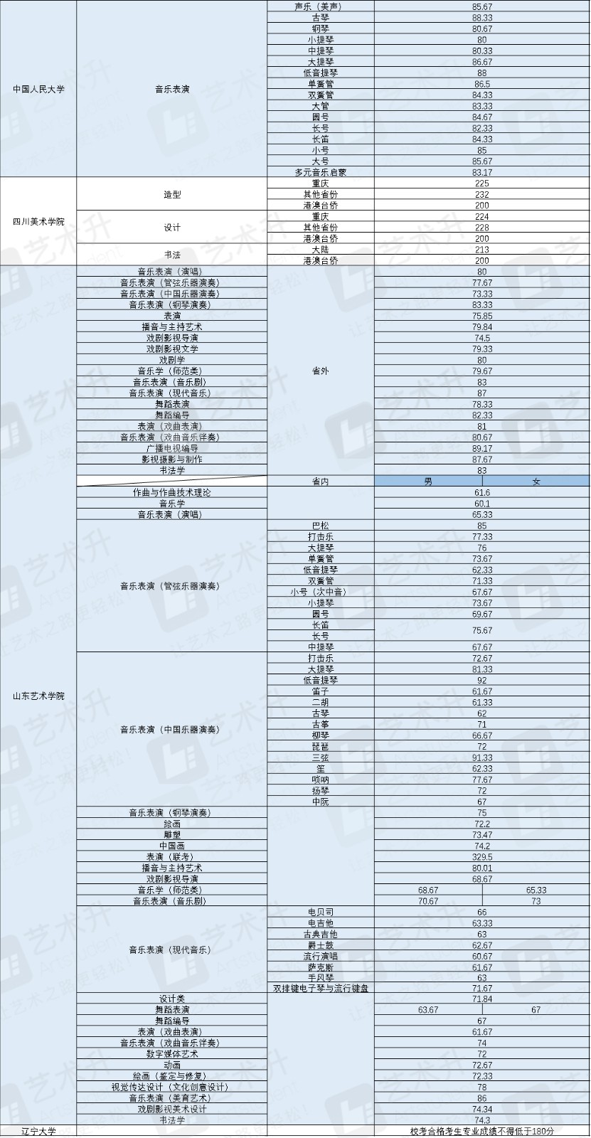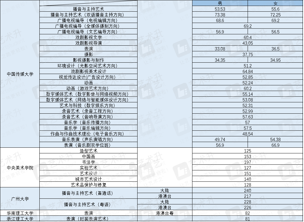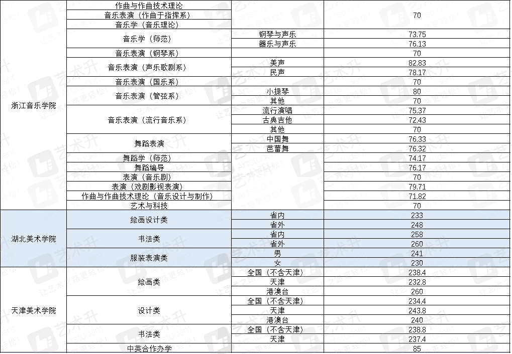 其中,北京服裝學(xué)院美術(shù)學(xué)類(lèi)合格分?jǐn)?shù)線215分