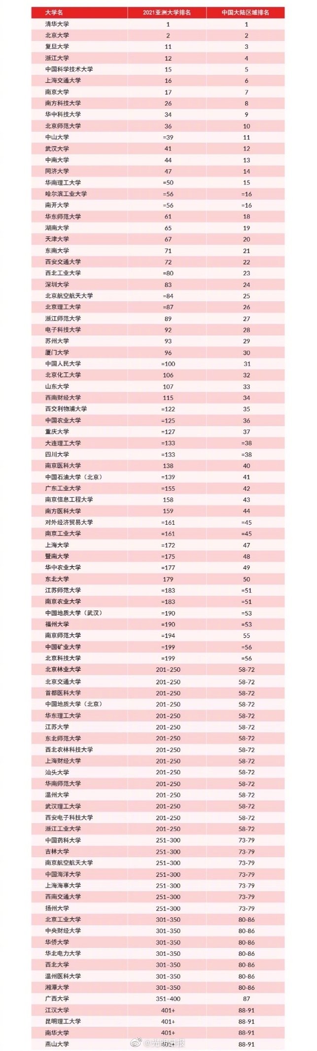 6月2日,泰晤士高等教育亞洲大學排名發(fā)布,與2020年相比,今年中國大陸高??倕⑴c數(shù)達到91所,比去年增加10所。