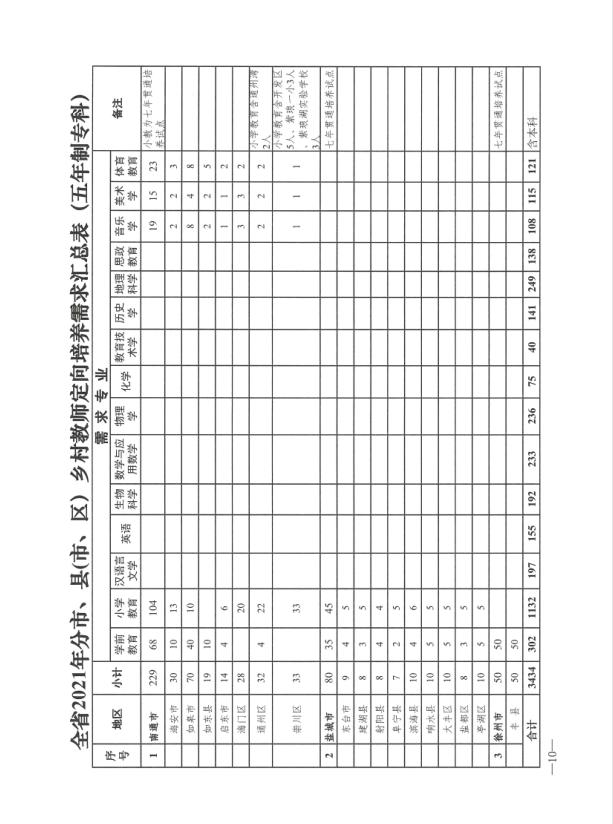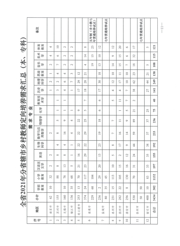 2021年江蘇省鄉(xiāng)村教師定向師范生招生計(jì)劃