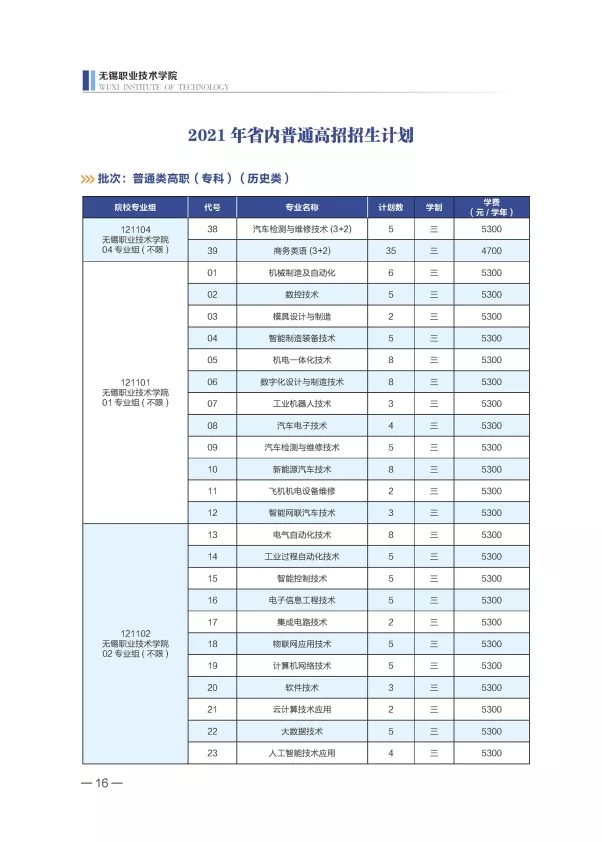 無(wú)錫職業(yè)技術(shù)學(xué)院2021年招生計(jì)劃