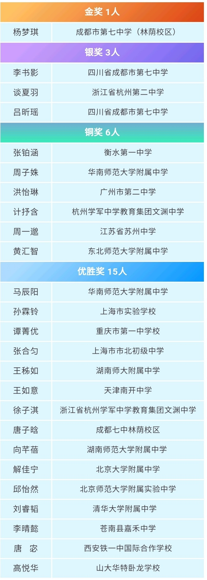 附:首屆丘成桐女子中學(xué)生競(jìng)賽獲獎(jiǎng)名單