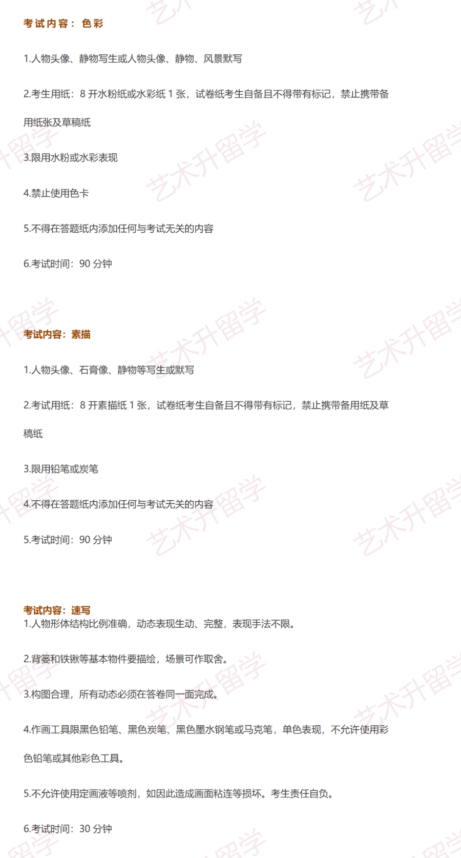 美術設計類專業(yè)考試科目及相關要求:下列科目