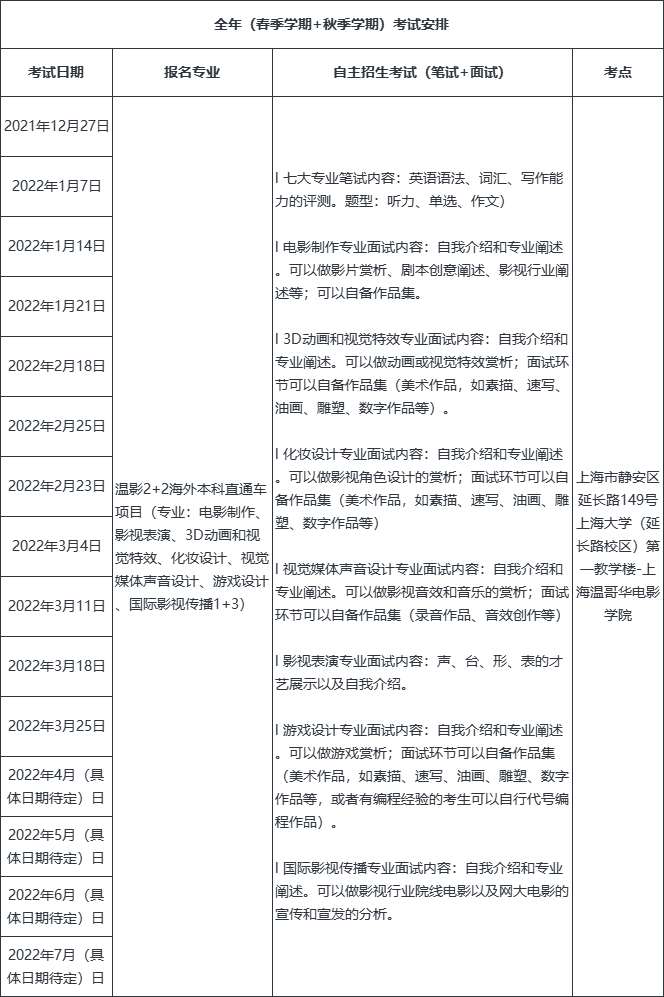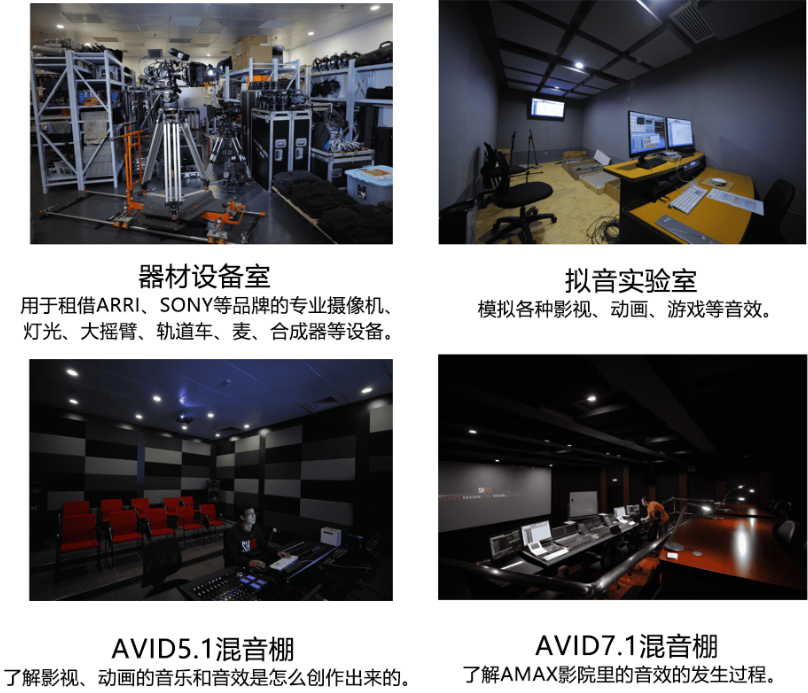 l專業(yè)課(電影制作、化妝設(shè)計(jì)、視覺媒體聲音設(shè)計(jì)、3D動畫與視覺特效、影視表演(雙語)、游戲設(shè)計(jì)、國際影視傳播等7選1)