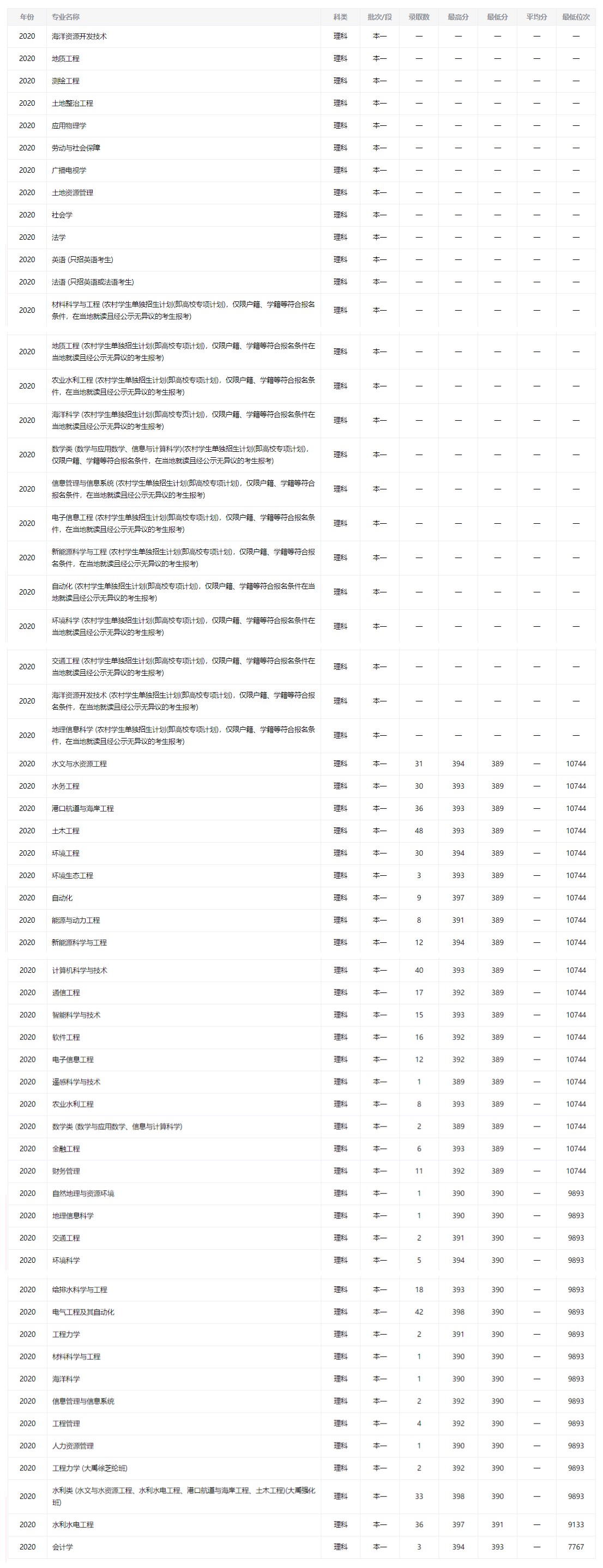 1 學(xué)校簡介● 河海大學(xué)是一所擁有百余年辦學(xué)歷史,以水利為特色,工科為主,多學(xué)科協(xié)調(diào)發(fā)展的教育部直屬全國重點(diǎn)大學(xué),是實(shí)施國家“211工程”重點(diǎn)建設(shè)、國家優(yōu)勢學(xué)科創(chuàng)新平臺(tái)建設(shè)、“雙一流”學(xué)科建設(shè)以及教育部批準(zhǔn)設(shè)立研究生院的高校。一百多年來,學(xué)校在治水興邦的奮斗歷程中發(fā)展壯大,被譽(yù)為“水利高層次創(chuàng)新創(chuàng)業(yè)人才培養(yǎng)的搖籃和水利科技創(chuàng)新的重要基地”。學(xué)校在南京市、常州市設(shè)有西康路校區(qū)、江寧校區(qū)和常州校區(qū),占地面積2462畝。 河海大學(xué)源于1915年由近代著名愛國實(shí)業(yè)家、教育家張謇創(chuàng)辦的河海工程專門學(xué)校,是中國第一所培養(yǎng)水利人才的高等學(xué)府,開創(chuàng)了中國水利高等教育的先河。張聞天、沈澤民等無產(chǎn)階級(jí)革命家曾在河海求學(xué),并從這里走上革命道路。 學(xué)校設(shè)有水文水資源學(xué)院、水利水電學(xué)院、港口海岸與近海工程學(xué)院、土木與交通學(xué)院、環(huán)境學(xué)院、能源與電氣學(xué)院、信息學(xué)部、力學(xué)與材料學(xué)院、地球科學(xué)與工程學(xué)院、農(nóng)業(yè)科學(xué)與工程學(xué)院、機(jī)電工程學(xué)院、海洋學(xué)院、理學(xué)院、商學(xué)院、公共管理學(xué)院、法學(xué)院、馬克思主義學(xué)院、外國語學(xué)院、體育系、河海里爾學(xué)院(中外合作辦學(xué)機(jī)構(gòu))等專業(yè)院系和大禹學(xué)院(拔尖人才培養(yǎng)學(xué)院)、遠(yuǎn)程與繼續(xù)教育學(xué)院、國際教育學(xué)院。截止2021年9月,各類學(xué)歷教育在校學(xué)生55912名,其中研究生15642名,普通本科生20502名,成人教育學(xué)生18591名,留學(xué)生1177名。 2 2022年河海大學(xué)錄取分?jǐn)?shù)線及位次● 由于2022年河海大學(xué)錄取分?jǐn)?shù)線還未公布,各位考生和家長可以參考往年的河海大學(xué)專業(yè)錄取分?jǐn)?shù)線和位次,同時(shí)也可以添加江蘇升學(xué)指導(dǎo)中心志愿填報(bào)指導(dǎo)老師咨詢。 3 河海大學(xué)專業(yè)錄取情況● 1.理科(2020年) 2.文科(2020年) 4 河海大學(xué)近三年分?jǐn)?shù)線及位次● 1.物理(理科) 2.歷史(文科) 相信看到這里后,2022年江蘇省的高三同學(xué)已經(jīng)知道自己要考進(jìn)江蘇省前多少名才能讀河海大學(xué)。不過吳老師也要提醒大家:參考學(xué)校三年位次,只是進(jìn)入學(xué)校的門檻。如果你想被河海大學(xué)里的目標(biāo)專業(yè)給錄取,那么則需要參考該校該專業(yè)近三年的錄取位次才行! 河海大學(xué)錄取線及位次排名線上咨詢:https://www.sxzd.cn/bk_22482048.html 在線提交您想報(bào)考的學(xué)校和專業(yè),江蘇升學(xué)指導(dǎo)中心志愿填報(bào)指導(dǎo)老師會(huì)幫助你查詢?cè)撔v年專業(yè)錄取分?jǐn)?shù)線及位次,測出你被該校錄取的概率是多少! 哪些考生需要一對(duì)一指導(dǎo)? 1、高考分?jǐn)?shù)較高,一心想沖名校但自己又沒有把握的考生; 2、邊緣考生,即分?jǐn)?shù)剛過線,希望被較高一級(jí)院校錄取的考生; 3、分?jǐn)?shù)不上不下,全省處同等水平的考生人數(shù)眾多,面臨競爭壓力難以把握勝算概率的考生; 4、既想上好學(xué)校又想進(jìn)好專業(yè),面臨院校與專業(yè)的兩難抉擇的考生; 5、對(duì)院校和專業(yè)認(rèn)識(shí)不清,了解不夠,尤其對(duì)招生錄取規(guī)則難以把握的考生; 6、家長沒有時(shí)間和精力準(zhǔn)備孩子的報(bào)考事宜,對(duì)志愿填報(bào)學(xué)習(xí)不夠、準(zhǔn)備不充分,感到茫然或困難重重的考生。 如果對(duì)于孩子擇校定位有困難 可以找我們的專家進(jìn)行一對(duì)一輔導(dǎo) 掃描下方二維碼進(jìn)行預(yù)約