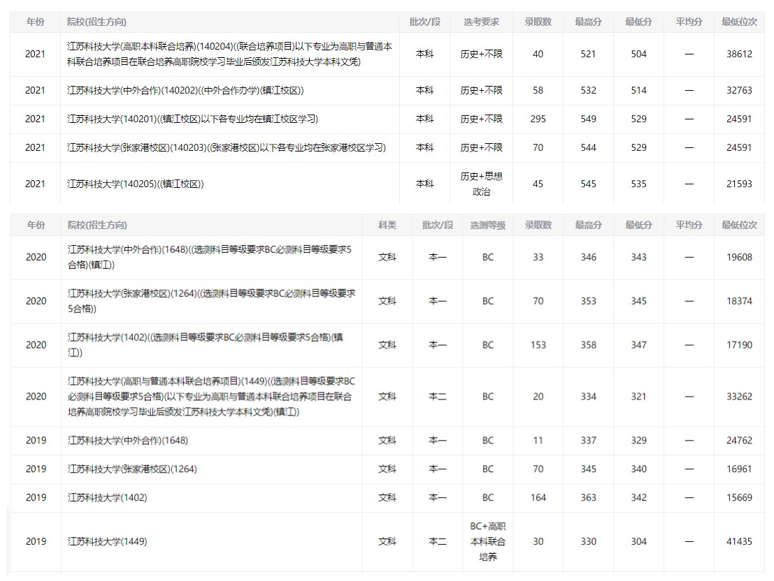 江蘇科技大學(xué)近三年分數(shù)線及位次