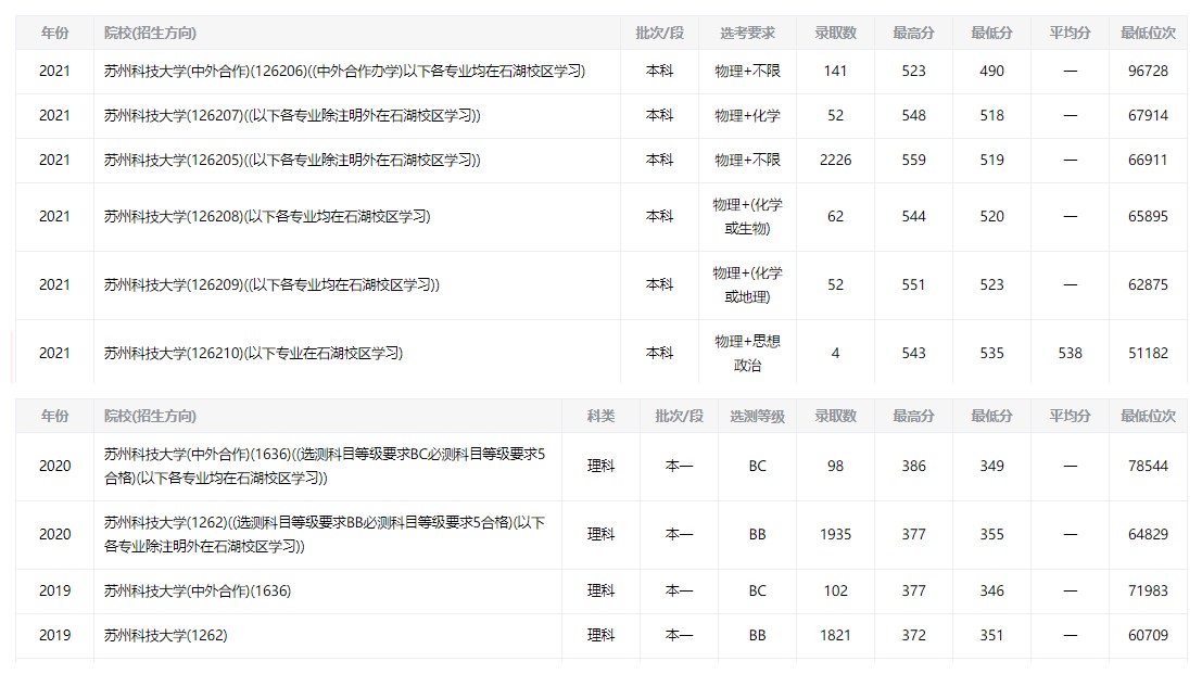 蘇州科技大學(xué)近三年分?jǐn)?shù)線及位次