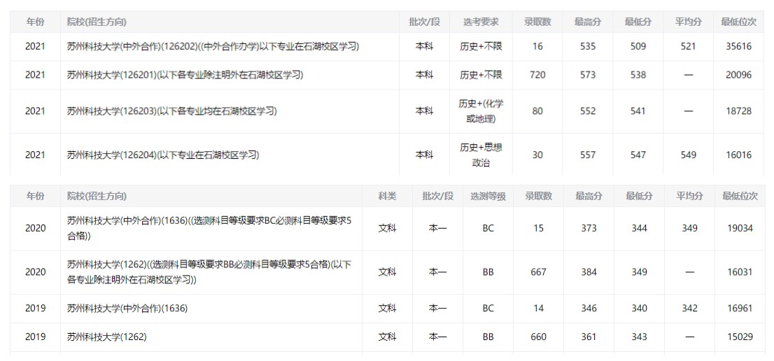 2022年蘇州科技大學(xué)各專業(yè)錄取分?jǐn)?shù)線及位次排名(江蘇?。?/h1>