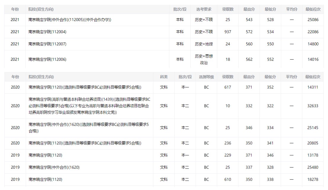 2022年南京曉莊學(xué)院各專(zhuān)業(yè)錄取分?jǐn)?shù)線(xiàn)及位次排名(江蘇?。?/h1>