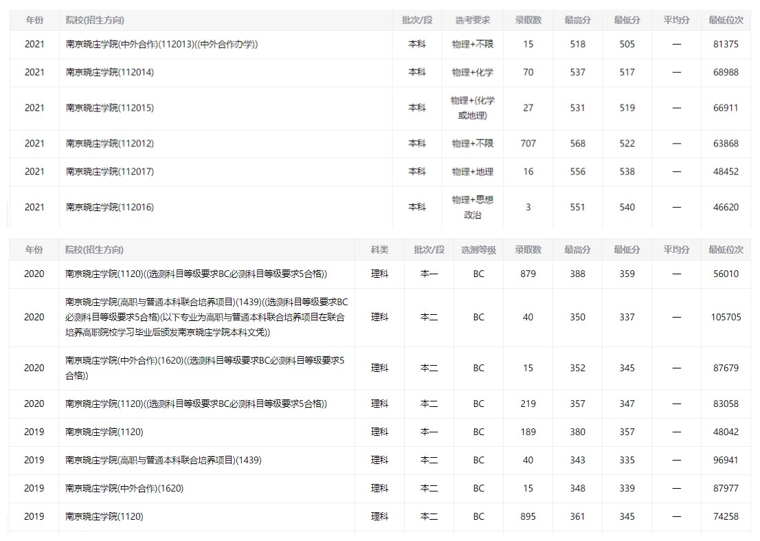 南京曉莊學(xué)院近三年分?jǐn)?shù)線(xiàn)及位次