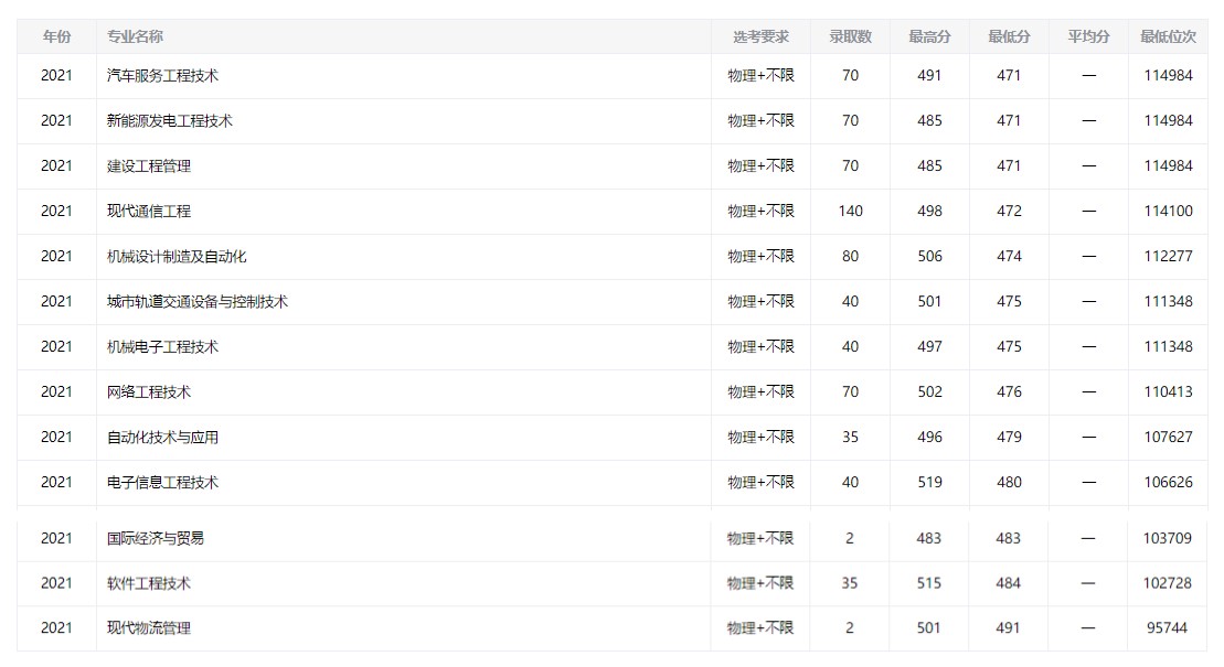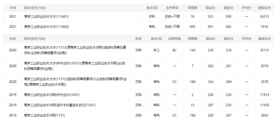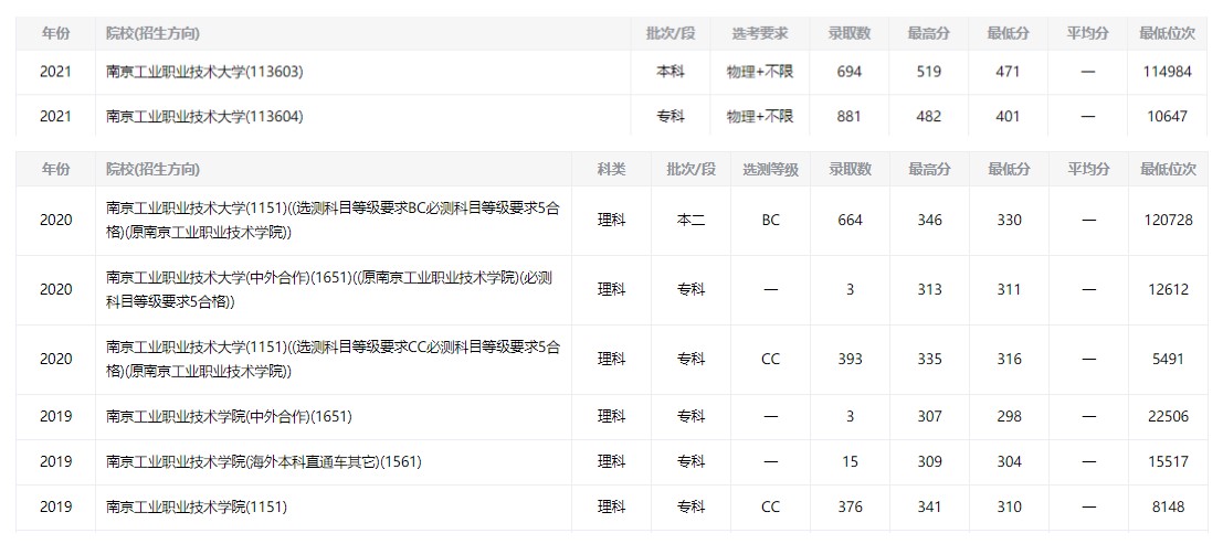 3 南京工業(yè)職業(yè)技術(shù)大學(xué)專業(yè)錄取情況● 1.物理(2021年) 2.歷史(2021年)