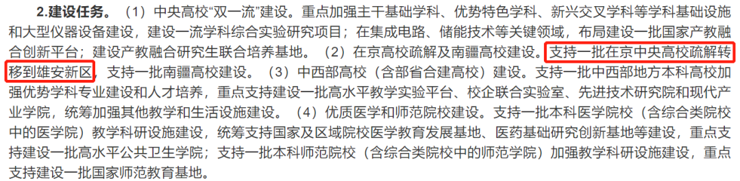 2021年5月,《“十四五”時期教育強國推進工程實施方案》明確“支持一批在京中央高校疏解轉(zhuǎn)移到雄安新區(qū)”,則讓雄安這項被稱為“千年大計、國家大事”的新城計劃,再一次成為了公眾關(guān)注的焦點。