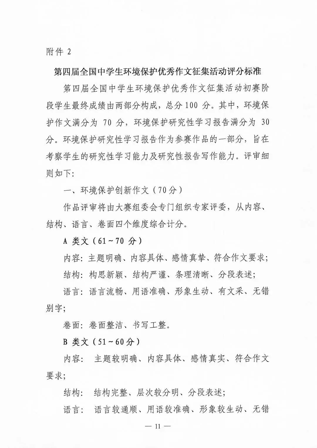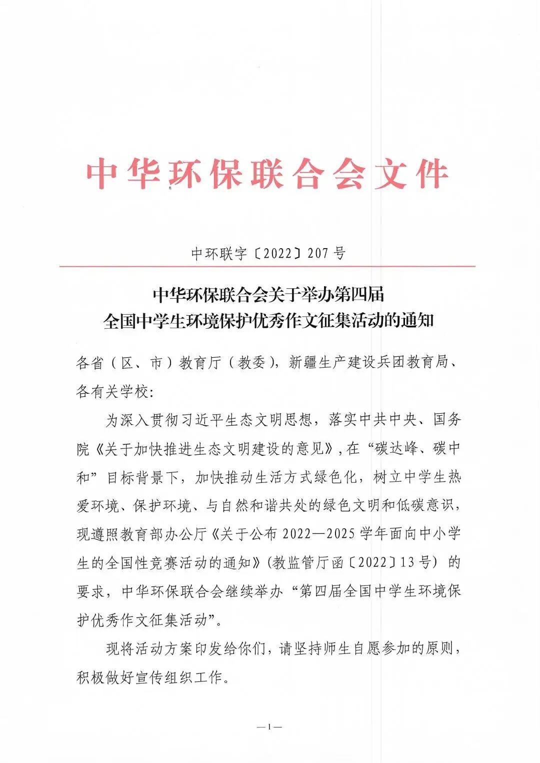 近日,第四屆全國(guó)中學(xué)生環(huán)境保護(hù)優(yōu)秀作文征集活動(dòng)開(kāi)啟,10月20日開(kāi)始報(bào)名!全國(guó)中學(xué)生環(huán)境保護(hù)優(yōu)秀作文征集活動(dòng)已入選教育部2022-2025學(xué)年面向中小學(xué)生的全國(guó)性競(jìng)賽活動(dòng)名單,綜評(píng)院校認(rèn)可度高,準(zhǔn)備報(bào)考綜評(píng)的考生家長(zhǎng)重點(diǎn)關(guān)注!