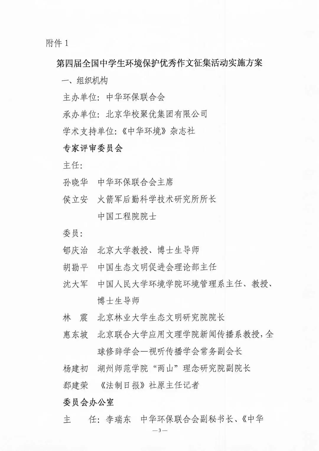第四屆全國(guó)中學(xué)生環(huán)境保護(hù)優(yōu)秀作文征集活動(dòng)已經(jīng)開(kāi)啟,高三組活動(dòng)報(bào)名及作品提交時(shí)間10月20日—12月25日,高一、二組活動(dòng)報(bào)名及作品提交時(shí)間10月20日—4月30日,具體內(nèi)容方式參考以下通知。