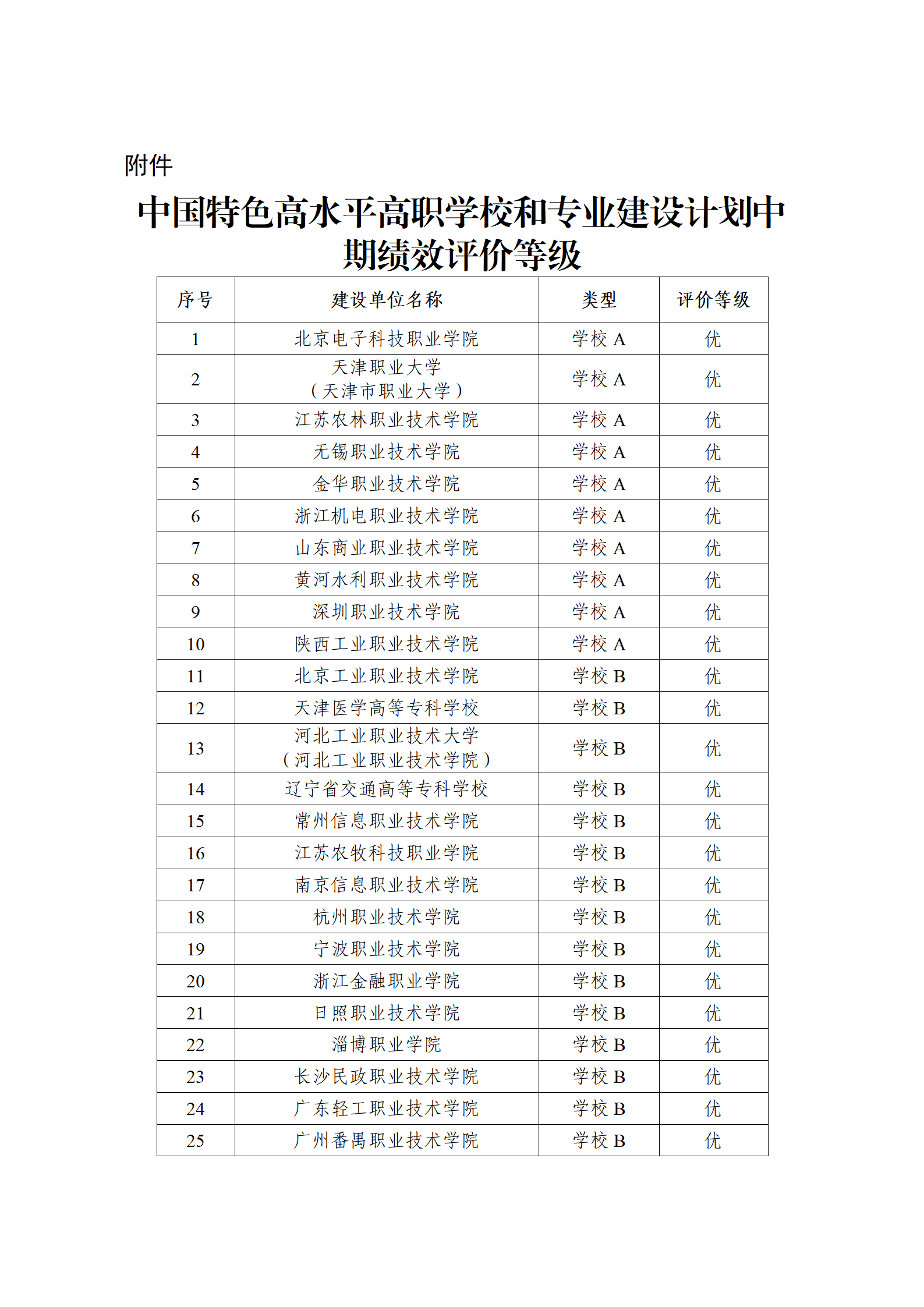 近日,教育部發(fā)布了《教育部辦公廳財政部辦公廳關(guān)于公布中國特色高水平高職學(xué)校和專業(yè)建設(shè)計劃中期績效評價結(jié)果的通知》,對中國特色高水平高職學(xué)校和專業(yè)建設(shè)計劃(簡稱“雙高計劃”)中期績效評價結(jié)果予以公布。