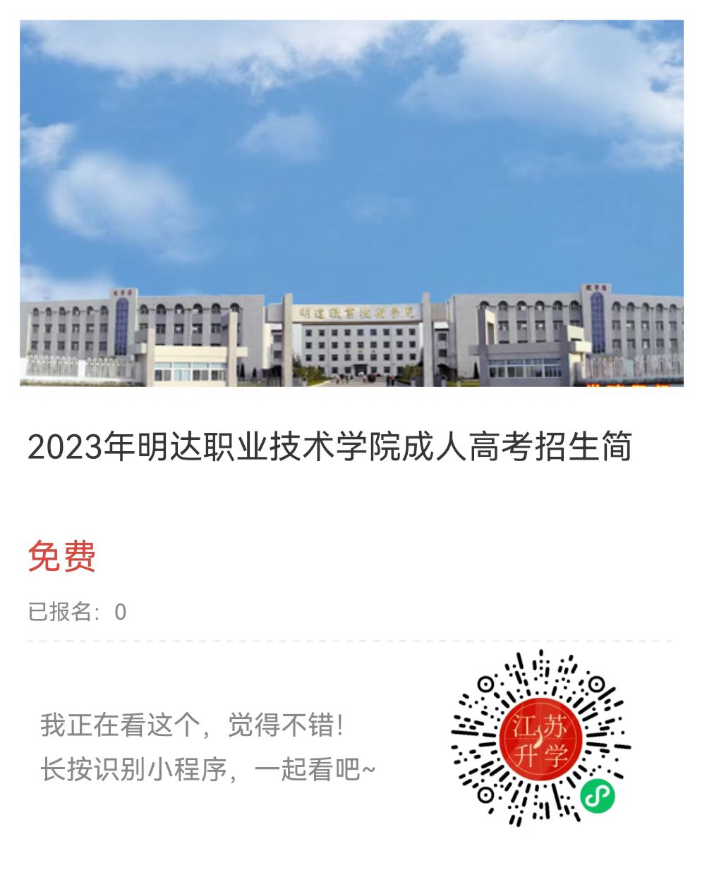 一、學(xué)校簡介 明達職業(yè)技術(shù)學(xué)院1995年獲江蘇省人民政府批準籌建,1996年掛靠揚州大學(xué)招生,1999年經(jīng)國家教育部批準,具有獨立頒發(fā)大專文憑資格的全日制普通高校,校址位于鹽城市射陽縣。 學(xué)院自辦學(xué)以來,逐年增加辦學(xué)投入、提升辦學(xué)品位、擴大辦學(xué)影響力,拓展辦學(xué)規(guī)模。特別是經(jīng)過兩輪教育教學(xué)評估,學(xué)院在專業(yè)建設(shè)、課程建設(shè)、實訓(xùn)基地建設(shè)、教學(xué)水平、師資隊伍建設(shè)等方面均取得了明顯成效,逐步形成了特色鮮明的辦學(xué)思路和規(guī)劃定位,教育教學(xué)水平不斷提升,人才培養(yǎng)質(zhì)量不斷提高,已成為為地方經(jīng)濟發(fā)展培養(yǎng)高素質(zhì)技能型專門人才的重要組成部分。學(xué)院完善的教學(xué)設(shè)施,嚴謹?shù)膶W(xué)生管理,創(chuàng)新的辦學(xué)思路,特色的辦學(xué)風(fēng)格,引起社會各界的廣泛關(guān)注和贊譽。 學(xué)院先后與上海和長江沿線各大城市上百家規(guī)模企業(yè)建立了穩(wěn)定的合作關(guān)系。學(xué)院實行畢業(yè)生實習(xí)和就業(yè)創(chuàng)業(yè)工作一體化的管理,有效地提高了畢業(yè)生就業(yè)質(zhì)量。學(xué)院還積極為學(xué)生構(gòu)建專轉(zhuǎn)本、專接本等升學(xué)立交橋以及開展國際留學(xué)專本碩直通合作。經(jīng)過二十多年的勵精圖治,學(xué)院雖然經(jīng)歷了不同的發(fā)展時期,但始終把培養(yǎng)高素質(zhì)、高技能的人才作為己任,形成了具有自己特色的辦學(xué)模式,為區(qū)域經(jīng)濟建設(shè)和發(fā)展提供了源源不斷的人才保障,為社會培養(yǎng)輸送了近2萬名合格的各類專業(yè)技術(shù)技能型人才。 二、報名條件 成人大專:具有普通高中、中專、職高、技校畢業(yè)證書的畢業(yè)生及具有同等學(xué)力的社會其他人員。 三、招生專業(yè) 四、學(xué)習(xí)費用 學(xué)生在校期間的學(xué)習(xí)費用,嚴格按江蘇省蘇價費(2007)271號文件規(guī)定執(zhí)行(文史類專業(yè)1700元/學(xué)年、理工類專業(yè)1900元/學(xué)年),書籍講義費等自理。(如有新文件規(guī)定則按新標準執(zhí)行) 五、考試科目 高起專理工類(550)需考語文、數(shù)學(xué)(理)、外語;文史類(510)需考語文、數(shù)學(xué)(文)、外語。 六、畢業(yè)與學(xué)位 成人大專:學(xué)生修完本專業(yè)教學(xué)計劃規(guī)定的課程(英語、計算機全省統(tǒng)考),成績合格,符合畢業(yè)條件者,由常州機電職業(yè)技術(shù)學(xué)院頒發(fā)經(jīng)省教育廳驗印和國家教育部電子注冊的成人高等教育??飘厴I(yè)文憑。 七、報名方式 在線報名:登錄江蘇升學(xué)指導(dǎo)中.心成人高考預(yù)報名系統(tǒng),填寫個人姓名、聯(lián)系電話、選擇院校及專業(yè),提交的報名信息后工作人員將會在24小時內(nèi)進行回復(fù)確認。 七、考試流程 九、報名咨詢 小程序免費報名→填入個人信息→等候招生老師聯(lián)系(1—3個工作日) 直接聯(lián)系招生老師