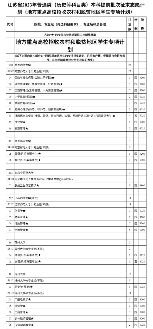 江蘇省2023年普通類(歷史等科目類)本科提前批次征求志 愿計(jì)劃(地方重點(diǎn)高校招收農(nóng)村和脫貧地區(qū)學(xué)生專項(xiàng)計(jì)劃).xls
