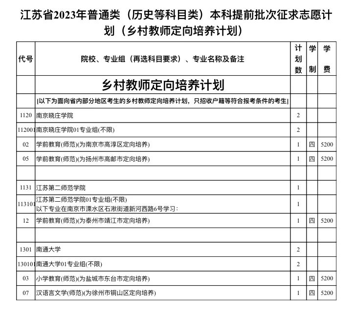 江蘇省2023年普通類(歷史等科目類)本科提前批次征求志 愿計(jì)劃(鄉(xiāng)村教師定向培養(yǎng)計(jì)劃).xls